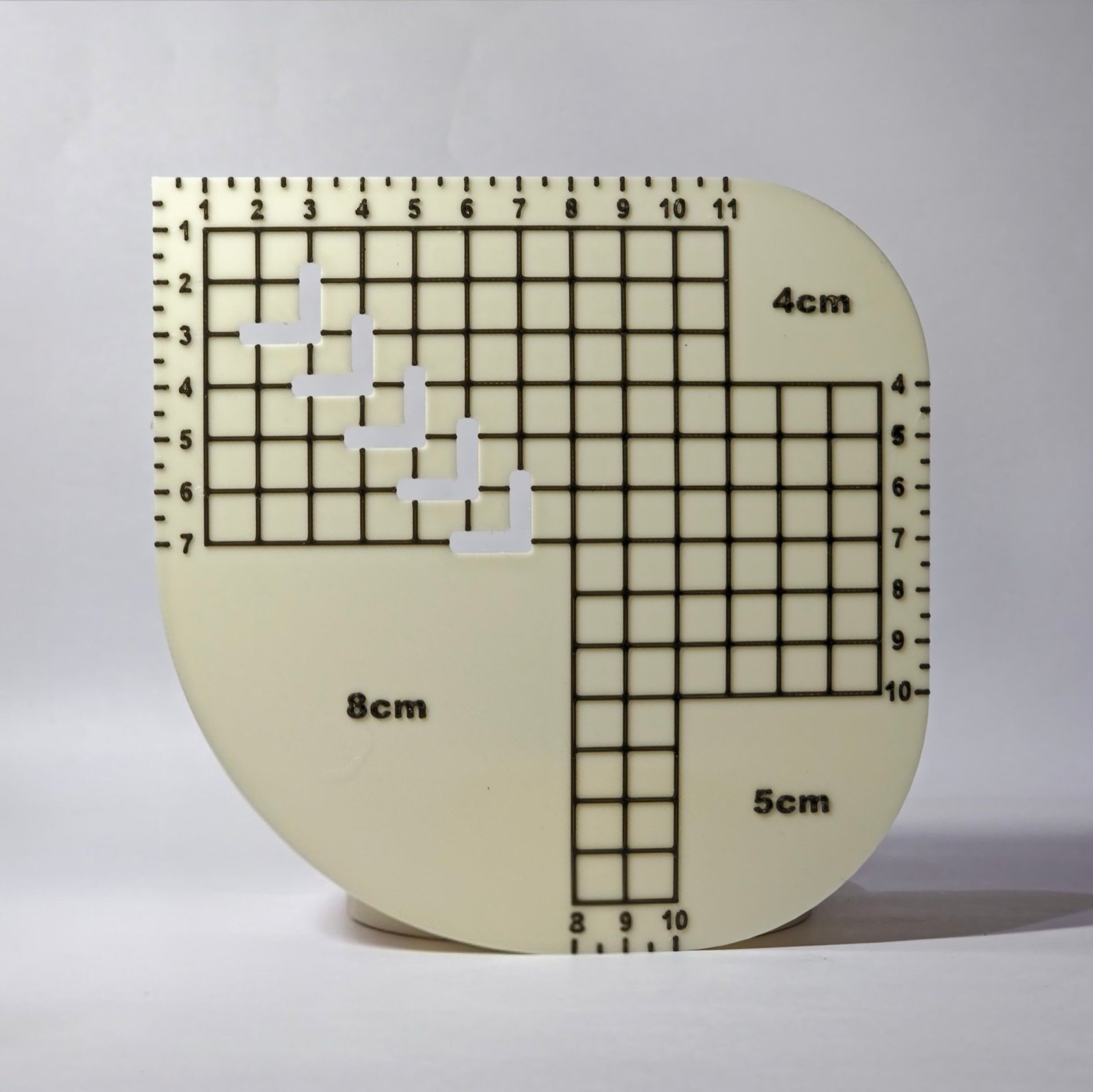 Este modelo es de 15×15 centímetros con 3 radios diferentes de 4, 5 y 8 centímetros.